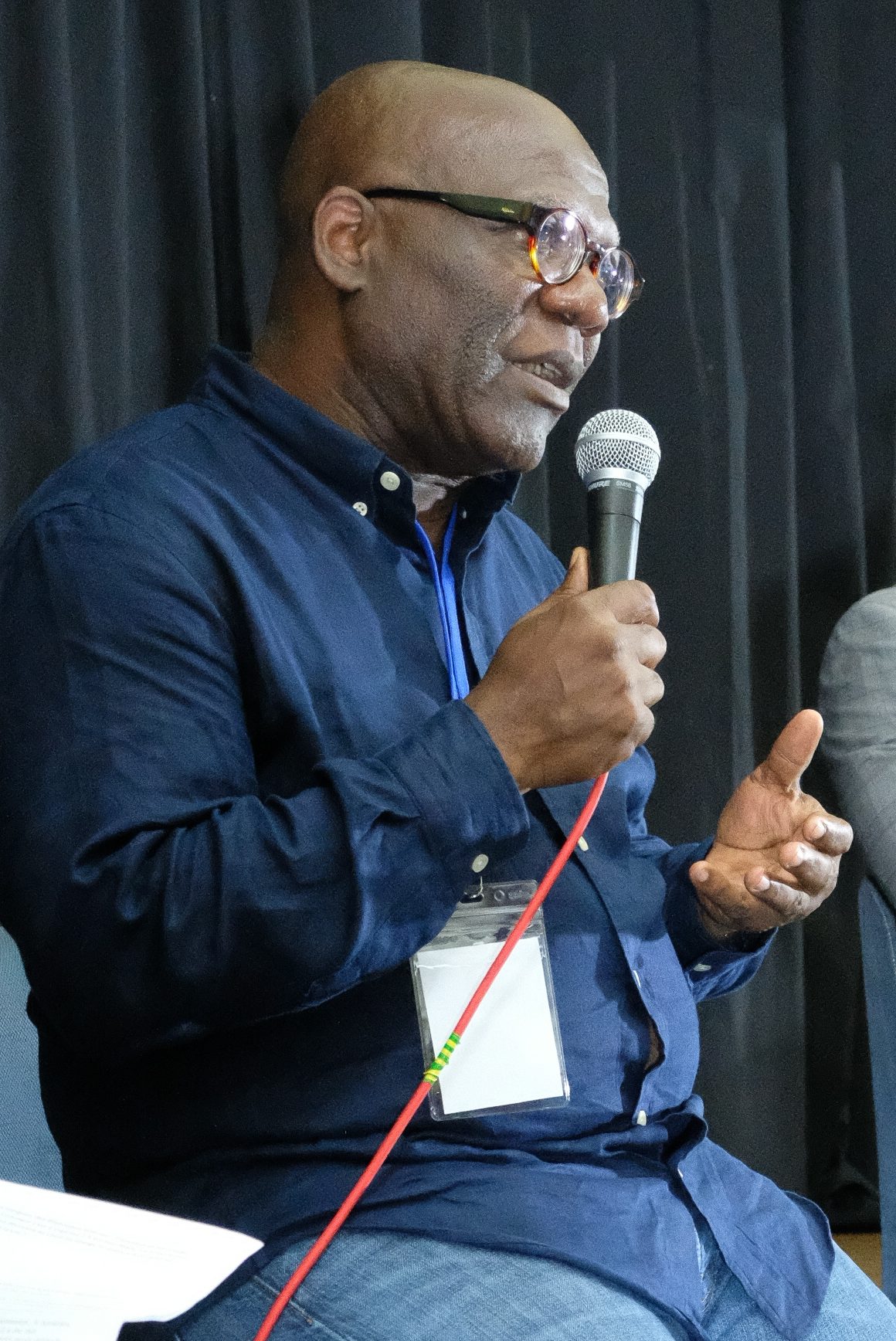 Mamadou Mahmoud N’Dongo, écrivain, dramaturge, cinéaste. Auteur du roman Furia (éd. L’harmattan). Avec Sami Tchak, ils ont une discussion bouleversante sur de la création artistique : influence de la douleur, de la trahison, du rapport de force. Une rencontre animée par Ahmed Bah. Crédit photo : Africa Sam
