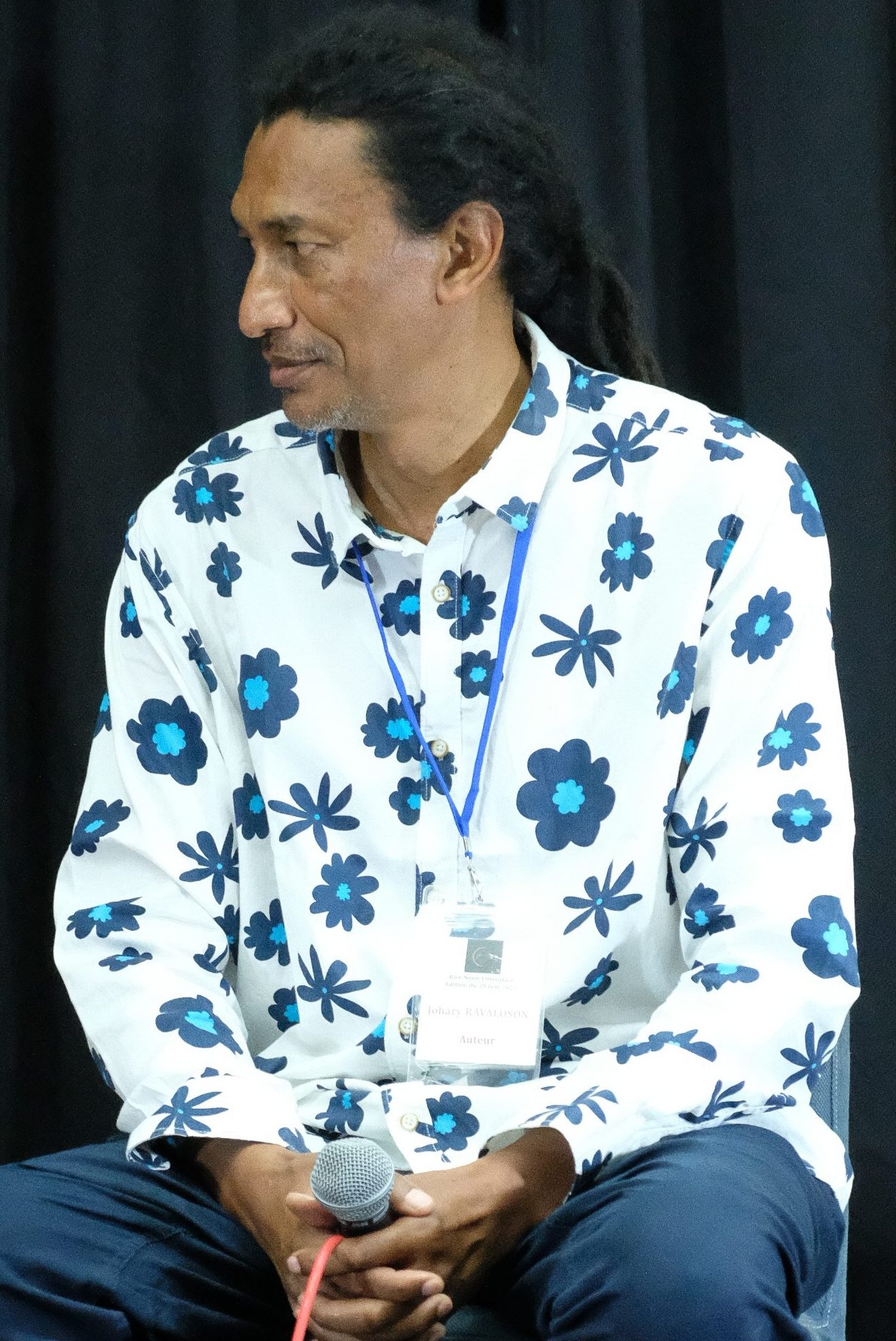 Johary Ravaloson, écrivain malgache, éditeur, juriste de formation. Il dirige les éditions Dodo vole. Il est l’auteur de nombreuses fictions. Dans le cadre Rive Noire Littérature, il a abordé le thème complexe des violences faites aux femmes et en particulier de l’inceste. Table ronde partagée avec Touhfat Mouhtare, animée par Selma Guettaf. Crédit photo : Africa Sam.