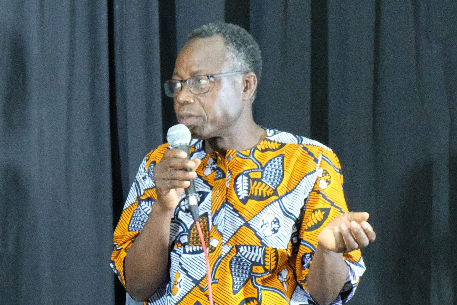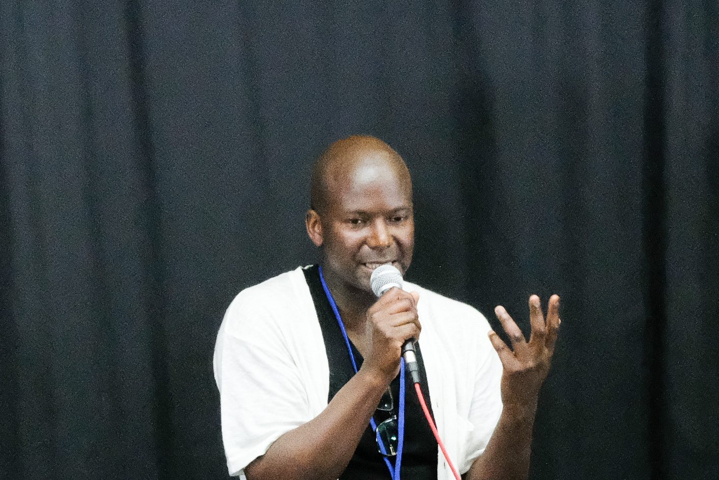 Dieudonné Niangouna, dramaturge, poète, romancier congolais, il a proposé une lecture dynamique d’extraits de son triptyque consacré à son père Augustin Niangouna. Crédit photo Africa Sam